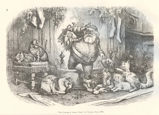 The above is one of my personal favorites. Note how the first thing Nast's Santa does is to greet the dogs and the cats. His hand is even upon the muzzle of one adoring dog! So sweet; a beautiful modern work of art.