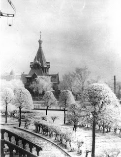 It might seem strange to see that such a beautiful St. Nicholas church was in China. But really, it's not (there is actually one currently there which I will write about in the future!). As found all over the world people here have a great respect for St. Nicholas too. (Please see this article found at Mystagogy). After the revolution in the early part of the 20th c in China's neighbor, Russia (in which the Tsar and his family were martyred), many Russians moved to Harbin. There, they found this lovely church dedicated to the beloved of all, St. Nicholas.